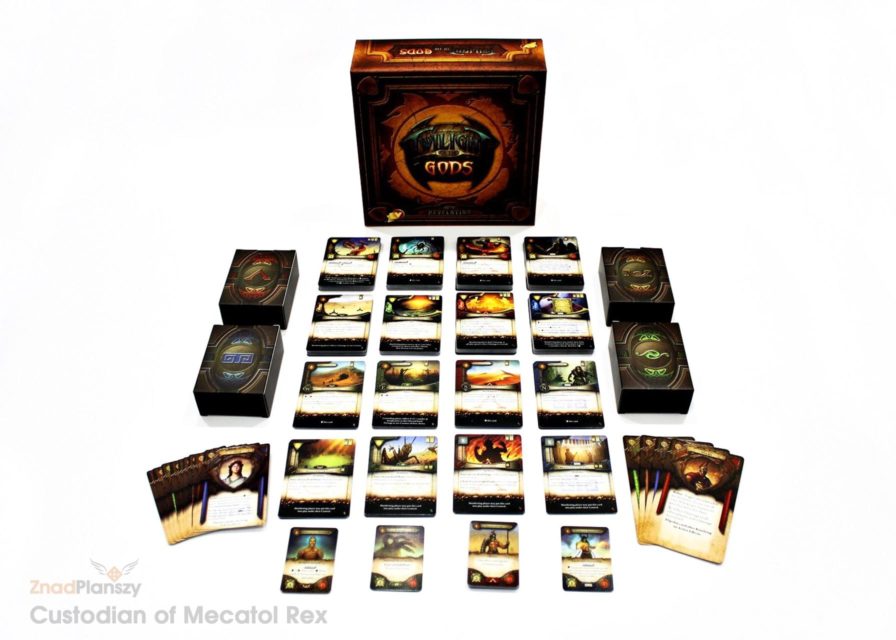 Gra obejmuje wiele panteonów, pochodzących z różnych cywilizacji, a każda z nich opowiada się za określoną strategią – Agresją, Negocjacją, Mistycyzmem lub Sanktuarium. Strategie te mają wpływ na to, jak będzie przebiegała walka, wprowadzając element asymetrii do rozgrywki. Twilight of the Gods ponadto splata najlepsze elementy karcianych gier konfrontacyjnych, sprytnie łącząc rozwiązania znane z takich gier jak Magic the Gathering, Android Netrunner czy Gra o Tron. Prezentowany dziś core set o nazwie Age of Revelation jest pierwszym z zestawów podstawowych i zawiera w sobie cztery początkowe armie. Docelowo wydawnictwo planuje rozwinąć tę markę o dodatkowe pudełka z armiami jak i boostery zawierające nowe karty i panteony. Zobaczmy zatem jak prezentuje się ten zestaw!