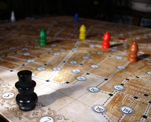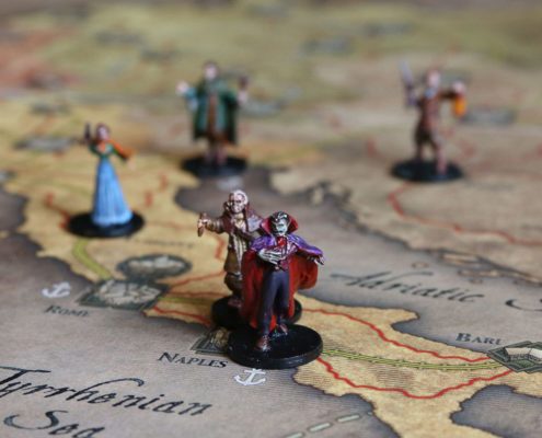 Mówiąc o wiktoriańskich czasach, nie można zapomnieć o bodaj najpopularniejszym, wywodzącym się z tej epoki nieumarłym – Draculi. Mroczny władca Transylwanii straszy graczy od ponad trzydziestu lat w kolejnych edycjach tej popularnej gry. Założenia są tu proste – jeden z graczy wciela się w rolę tytułowego Vlada Draculi, który potajemnie porusza się po mapie Europy, rozprzestrzeniając swoje diabelskie wpływy, podczas gdy pozostali uczestnicy wcielają się w bohaterów znanych ze stron powieści Brama Stokera, m.in. profesora Van Helsing czy Minę Harker. Ci ostatni mają za zadanie wyśledzić i zniszczyć Draculę oraz jego mroczny pomiot za pomocą m.in. kołków, wody święconej i odrobiny dedukcji. Zadanie to nie należy jednak do łatwych, ponieważ wędrujący po mapie w ukryciu Dracula ma także po swojej stronie wiele sztuczek, dzięki którym nie raz wywiedzie w pole swych prześladowców. Polecam grać w ten tytuł przy soundtracku Wojciecha Kilara do słynnego filmu Francisa Forda Coppoli o tym samym tytule. Mocne wrażenia gwarantowane!