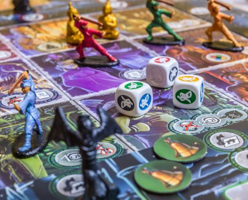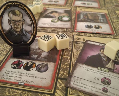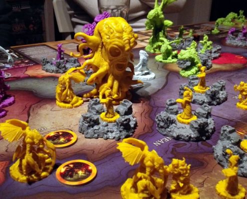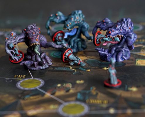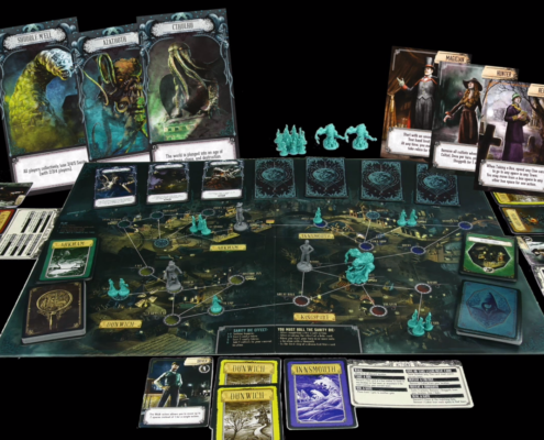 Popularność literatury H.P. Lovecrafta przyczyniła się w ostatnich latach do prawdziwej inwazji gier osadzonych w wykreowanych przez niego światach. W większości z nich, na wzór bohaterów ze stron jego powieści i opowiadań, gracze przyjmą role awanturników i poszukiwaczy przygód, którzy natknąwszy się na tajemnicze poszlaki wkrótce odkryją przerażającą prawdę o mrocznych kultach i panteonie przerażających pozaziemskich istot, zwanych Wielkimi Przedwiecznymi.  Najpopularniejszą serię gier osadzonych w uniwersum stworzonym przez Samotnika z Providence stanowią tzw. Arkham Files – gry wydane przez Fantasy Flight Games, a w naszym kraju przez Galaktę. W zależności od własnych preferencji, możemy wybrać skalę i eksplorować wnętrze mrocznej Posiadłości Szaleństwa, poszukiwać tropów na ulicach fikcyjnego miasteczka z kart Lovecraftiańskich powieści w Horrorze w Arkham albo starać się powstrzymać grozę przedwiecznych na skalę światową w Eldritch Horror. Której ścieżki byśmy nie obrali, czeka nas ciężka walka z kultystami i przerażającymi istotami jak Mi-Go, Shoggothami, Zombie czy mrocznymi rybio-podobnymi stworami z najgłębszych odmętów mórz. Każda z gier w serii Arkham Files charakteryzuje się mrocznym klimatem, atmosferą lat 20-tych minionego stulecia, a także masą spotkań z przerażającymi stworami, od widoku których nasze postacie w grze mogą postradać zmysły. I nie bez powodu! Proza Lovecrafta to ponoć jedyna rzecz, od której włos na karku jeży się samemu Stephenowi Kingowi, a gry planszowe FFG z pewnością zdołały uchwycić ten mroczny klimat.