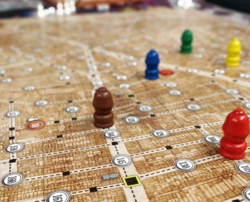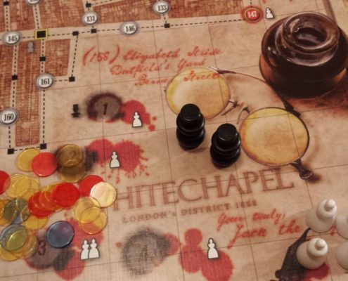 W odróżnieniu od wielu gier kooperacyjnych, które na przestrzeni lat z różnym skutkiem próbowały wprowadzić asymetryczne role, Listom z Whitechapel udało się to niemal doskonale. Autorzy gry bardzo dobrze zrównoważyli rolę Kuby Rozpruwacza, który często z ledwością wymyka się z rąk policji. Gracze wciągnięci są więc w bardzo emocjonujący pościg po ulicach wiktoriańskiego Londynu, przedstawionego w formie mapy z lokacjami w postaci okrągłych kółek z cyframi, pomiędzy którymi poruszać się będą prostytutki, strzegący ich policjanci, a także sam złoczyńca. Ten ostatni porusza się jednak potajemnie, a do pozostałych graczy będzie już należeć zadanie wytropienia go, nim zdąży zabić pięć razy. Listy z Whitechapel to niezwykle klimatyczna gra, w której dreszczyk grozy przeplata się umiejętnie z ciekawą mechaniką i sprawia, że gra wciągnie was do tego stopnia, że nie zauważycie pałętających się po pokoju duchów, gdy na zegarze wybije północ 😉
