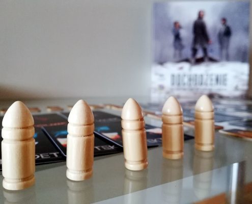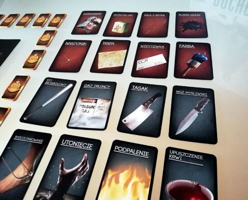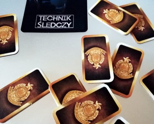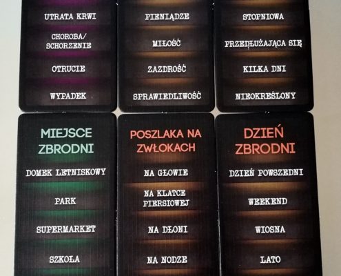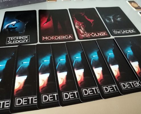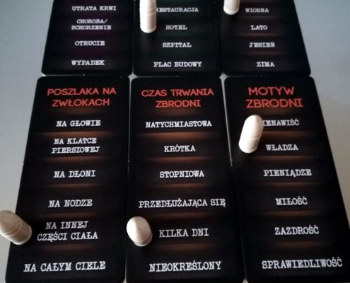 Można powiedzieć, że rozgrywka spoczywa na barkach Mistrza Gry, który w trakcie dochodzenia musi przez cały czas zachować ‘poker face’. Każdy, nawet najmniejszy ruch, czy zawahanie na jego twarzy może zdradzić przedwcześnie Mordercę i Wspólnika, dlatego tak jak zostało napisane w instrukcji, na początku warto wytypować doświadczonego gracza jako Technika Śledczego, aniżeli przydzielić tę rolę losowo. Ponadto zasady przewidują pewną dowolność jeśli chodzi o zaznaczanie wskazówek na Kaflach Poszlak. Wydaje mi się to bardzo dobrym rozwiązaniem, ponieważ Mistrz Gry sam decyduje jak szybko chce przekazać informacje o zabójstwie. Przykładowo może jednocześnie położyć dwa pociski na dwóch Kaflach jednocześnie, dać czas na dyskusję Detektywom, a następnie znów powtórzyć ten manewr lub go zmienić. Taka swoboda taktyczna sprawia, że gracz będący w roli Technika również ma szansę na zabawę, ponieważ z reguły uczestnicy wolą tropić.