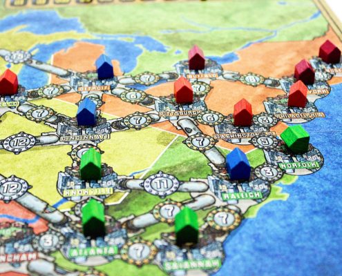 Nie jest jednak tak, że jest do gra tylko dla planszówkowych nowicjuszy. Należy pamiętać o jednym – Wysokie Napięcie to gra ekonomiczna w dosłownym znaczeniu tego słowa, a co za tym idzie, odnajdą się w niej również zaprawieni w bojach gracze. Zdarzało mi się słyszeć opinie, że w wydawca powinien w pudełku umieszczać również kalkulatory dla każdego z graczy. Myślę, że jest to już nieco przesadzone lecz prawdą jest, że w tej grze trzeba planować i liczyć, by mieć nadzieję na wygraną. Pieniędzy niemal zawsze brakuje, a są potrzebne na każdym kroku. Najlepszą metodą jest liczenie od tyłu: oszacowanie ile będzie kosztować rozbudowa sieci, następnie ile przyjdzie nam zapłacić za surowce i dopiero pozostałą resztę możemy przeznaczyć na inwestycje w nową elektrownię. Ważny jest jednak fakt, iż nawet jeśli plan się nie powiedzie, pomylimy się w obliczeniach bądź po prostu nie chce się nam tych wszystkich kosztów kalkulować, to nie stracimy zbyt dużo do pozostałych. Ja przez większość gry zwykle opieram się na intuicji i dopiero pod koniec zaczynam dokładne obliczenia, a pomimo tego często zdarzało mi się odnieść zwycięstwo, bądź walczyć o nie do samego końca.
